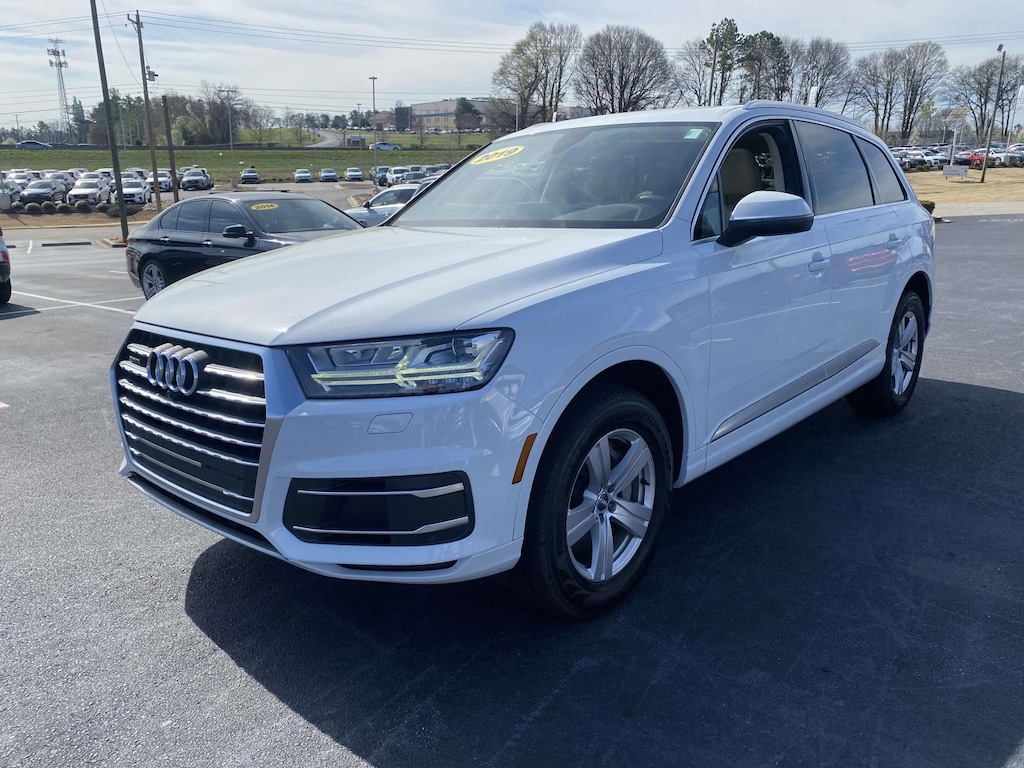 2019 Audi Q7 45 Premium Plus quattro Glacier White quattro 8-Speed Automatic with Tiptronic 2.0L 4-Cylinder TFSI 2019 Audi Q7 45 Premium Plus Glacier White, 3-Spoke Multifunction Steering Wheel w/Paddles, 3D Bose Surround Sound System, 4-Zone Automatic Climate Control, Audi Phone Box w/Wireless Charging, Audi Side Assist w/Pre Sense Rear, Audi Virtual Cockpit, Black Rubber All-Weather Floor Mats (Set of 4), Cold Weather Package, Convenience Package, Convenience Package Credit, Driver & Passenger Front Seats w/Ventilation, Heated Auto-Dimming Power Folding Exterior Mirrors, Heated Rear Seats, LED Headlights w/Dynamic Indicators, LED Interior Lighting Package, Navigation system: MMI Navigation plus, Power Liftgate, Power Sunroof, Premium Plus Package, Rear Door/Side Windows & Tailgate Sunshades, Topview Camera System, Towing Package, Warm Weather Package.
