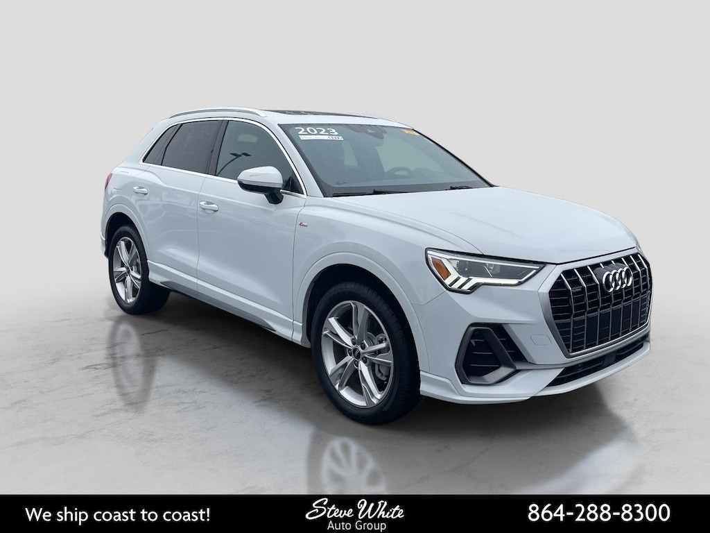 2023 Audi Q3 Premium Plus S Line quattro Glacier White quattro 8-Speed Automatic with Tiptronic 2.0L 4-Cylinder TFSI 2023 Audi Q3 Premium Plus Glacier White, 12.3' Audi Virtual Cockpit Plus Screen, Adaptive Cruise Assist w/Lane Guidance, Alexa Integration, Audi Connect PLUS, Audi MMI Navigation Plus, Convenience Package, LED Interior Lighting Plus Package, Premium Plus Package, Sonos Premium Sound System w/3D Sound, Stainless Steel Trunk Sill, Technology Package, Top View Camera System, Traffic Sign Recognition, Wireless Apple CarPlay/Android Auto, Wireless Phone Charging Pad.