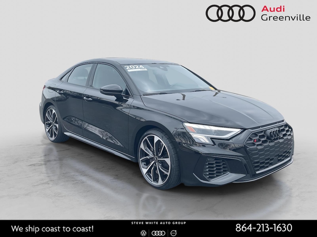 2024 Audi S3 2.0T Premium Plus quattro Black Metallic quattro 7-Speed Automatic S tronic 2.0L 4-Cylinder TFSI 2024 Audi S3 2.0T Premium Plus Black Metallic, Adaptive Cruise Assist w/Lane Guidance, Audi Connect NAV & PLUS, Audi MMI Navigation Plus, Audi Virtual Cockpit Plus, Bang & Olufsen Sound System w/3D Sound, Convenience Package, Premium Plus Package, Technology Package, Traffic Sign Recognition.
