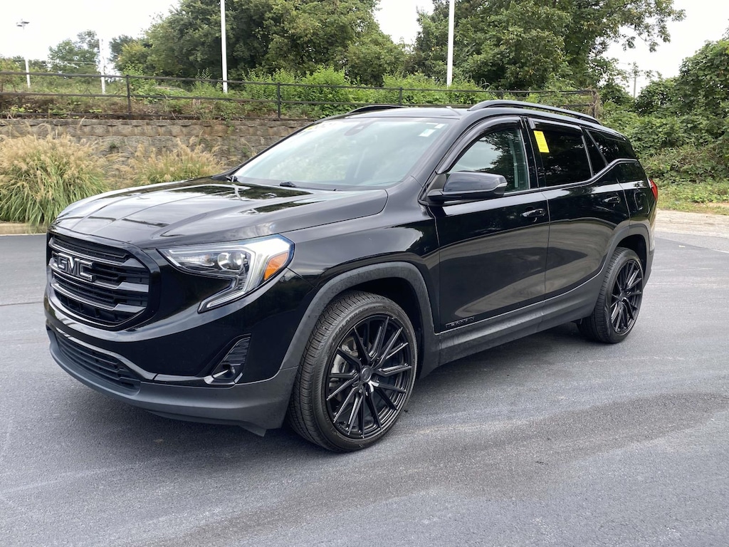 2021 GMC Terrain SLT Ebony Twilight Metallic FWD 9-Speed Automatic 1.5L DOHC 2021 GMC Terrain SLT Ebony Twilight Metallic, Adaptive Cruise Control, Black GMC Center Caps w/Black GMC Lettering, Black Mirror Caps, Darkened Front Grille, Elevation Edition, GMC Pro Safety Plus, Lane Change Alert w/Side Blind Zone Alert, License Plate Front Mounting Package, Preferred Equipment Group 4SA, Rear Cross-Traffic Alert, Rear Park Assist, Roof-Mounted Luggage Rack Black Side Rails, Safety Alert Seat, Wheels: 19' x 7.5' Gloss Black Painted Aluminum.